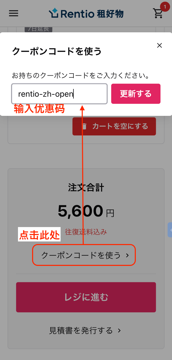 使用您持有的优惠码,可以享受租赁费用折扣等服务。 优惠码需在购物车页面输入。